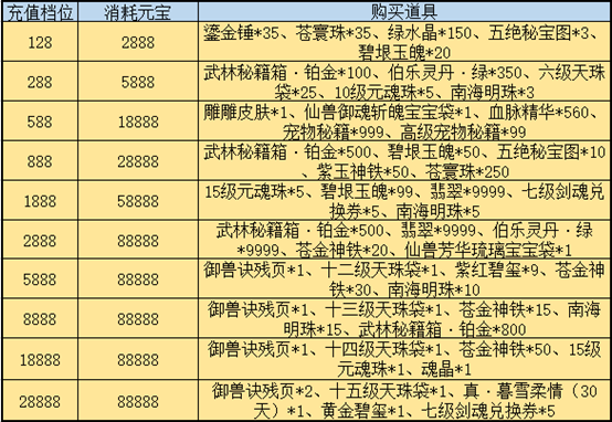 为了使广大玩家更加灵活的充值和使用元宝,9月15日更新后,全新升级的周充值和季度累计充值奖励重磅来袭。