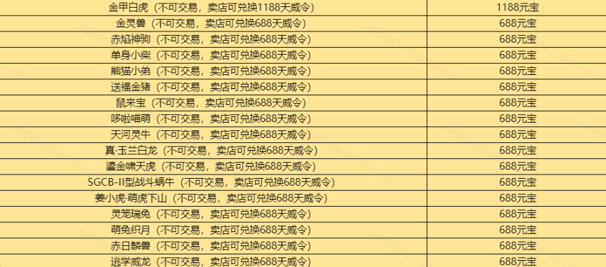 其中《绝影骁腾包》内容略有修改,包含黄金甲/金甲玄冥白虎等全部奖励