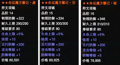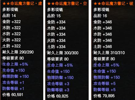 相信这批项链最吸引大家目光的就是“16品阶”,是的,你没有看错,其中两个项链达到了目前完美大陆最高品阶——16品!项链在防御值上是同类中的佼佼者;附加属性也多达五项之多。对于玩家来说,如果能够佩戴上它,将会大幅提高自己的功放水平。并且“★★命运魔方徽记”还可以进行更深层次的精炼,令装备更具威力! 这些丰厚的奖励是不是令你垂涎呢?那还在等什么?进入奇幻的命运魔方世界,迎接各种充满乐趣的挑战,大奖触手可得!赶快加入我们吧! 更多命运魔方详情:http://w2i.wanmei.com/hd/080313_mofang/index.htm