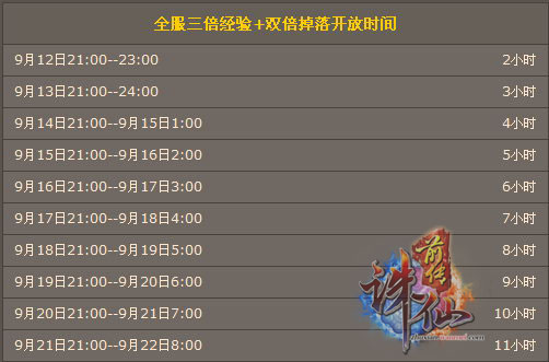 【3倍经验迅速升级!怪物道具掉落全服双倍!】