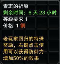 30天以上未登录的玩家上线即可在河阳 摇钱树下领取“梦回诛仙”超值大礼,除了盛满了金丹的金丹葫芦、助你低消耗快升级的彩金VIP卡、海量悟道灵珠,你还可以获得专属老玩家属性加成道具,提升你50%的攻击和防御,让你化身修真高手!